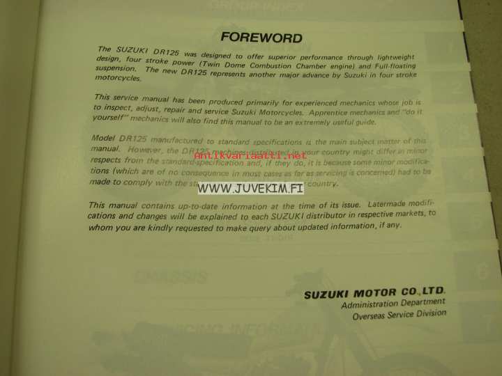 Suzuki DR125 service manual -korjaamokirja