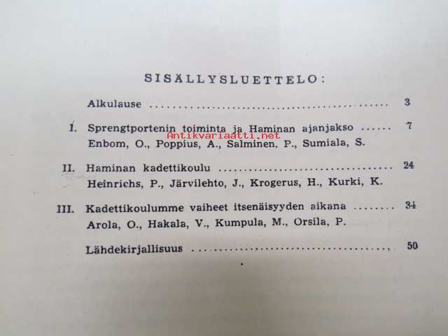 | Saatavilla | 1 kpl | | Julkaisuvuosi | 1944 | | Sivuja | 50 | | Painos | 1. | | Kunto | K2 | | Sidonta/painoasu | Nidottu (pehmeäk.) | | Kielet | Suomi |