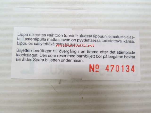 Helsinki / Liikennelaitos / HKL - HST / YTV - 1988 Kertalippu Lapset -matkalippu