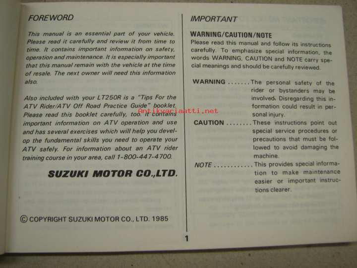 Suzuki LT250R -käyttöohjekirja