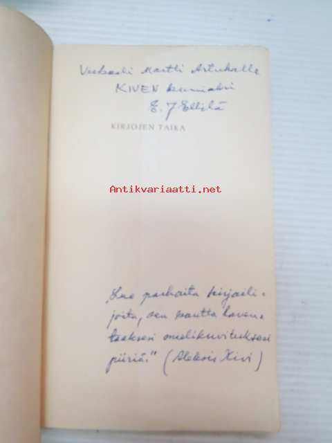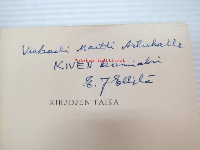 Kirjojen taika - "Virkaveli M.A:lle KIVEN kunniaksi E.J. Ellilä" -omiste