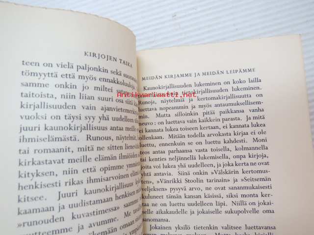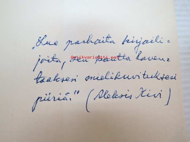 | Saatavilla | 1 kpl | | Julkaisuvuosi | 1952 | | Sivuja | 144 | | Painos | 1. | | Kunto | K2 | | Sidonta/painoasu | Nidottu (pehmeäk.) | | Kielet | Suomi |