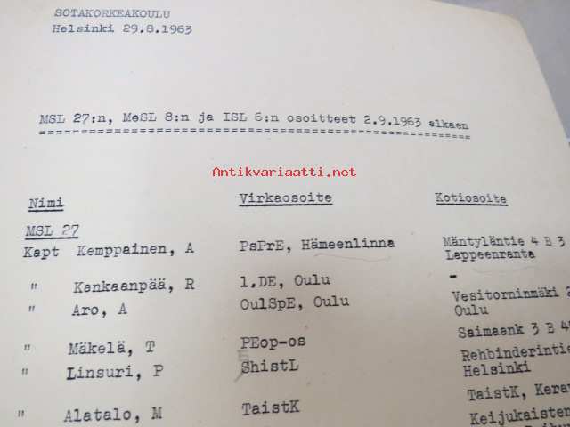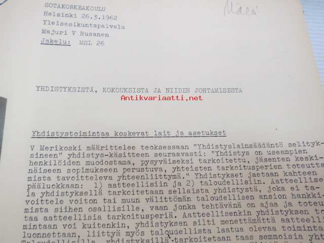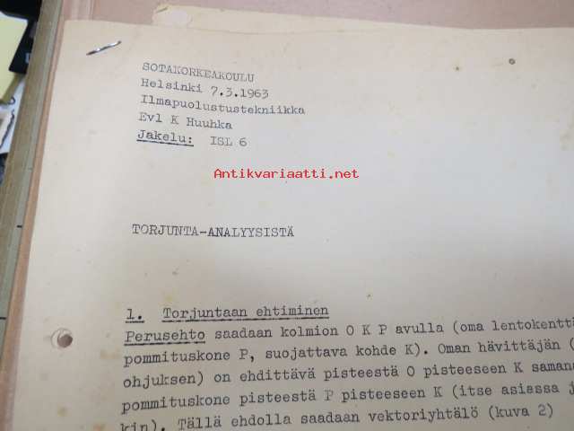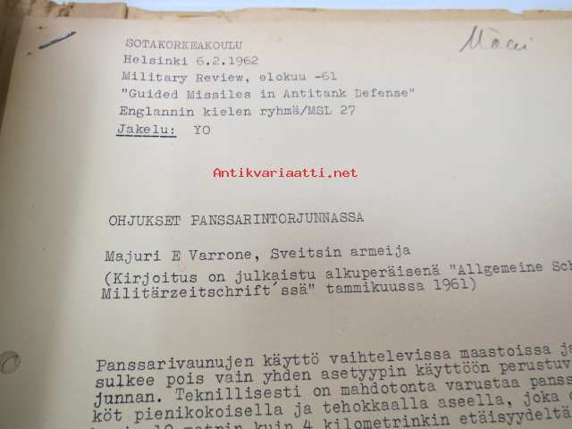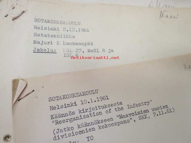Sotakorkeakoulu 1960-luvun alkupuolen kurssimateriaalia noin 20 kansiollista - Kapteeni Mäki