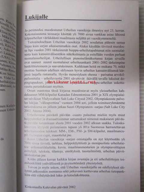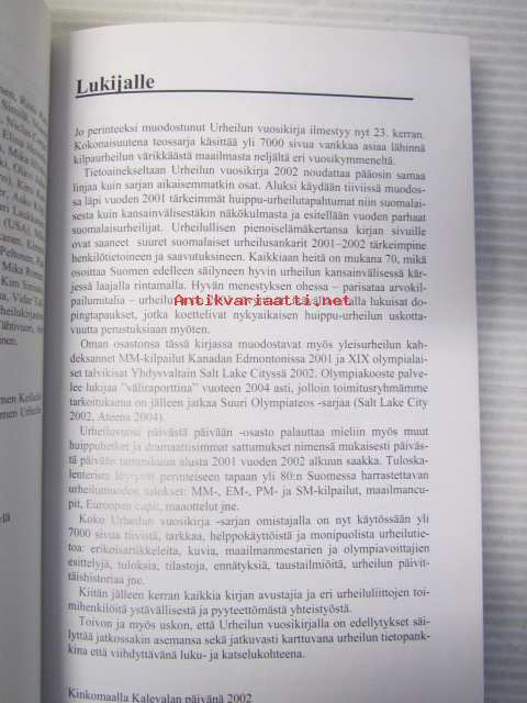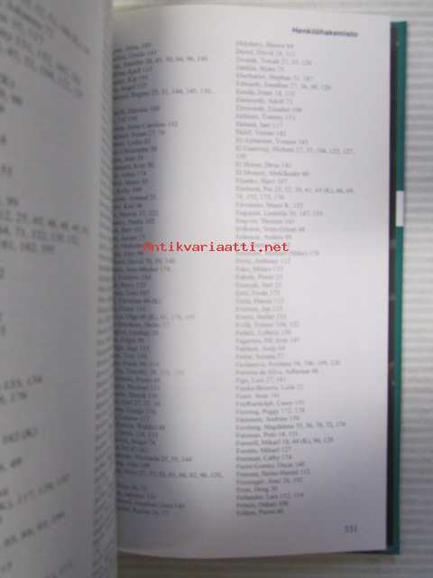 | Saatavilla | 1 kpl | | Julkaisuvuosi | 2002 | | Sivuja | 339 | | Painos | 1. | | Kunto | K3 | | Sidonta/painoasu | Kuvitettu kovakantinen | | ISBN | 952-5106-16-0 | | Kielet | Suomi |
