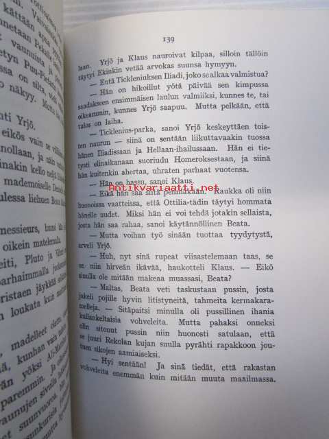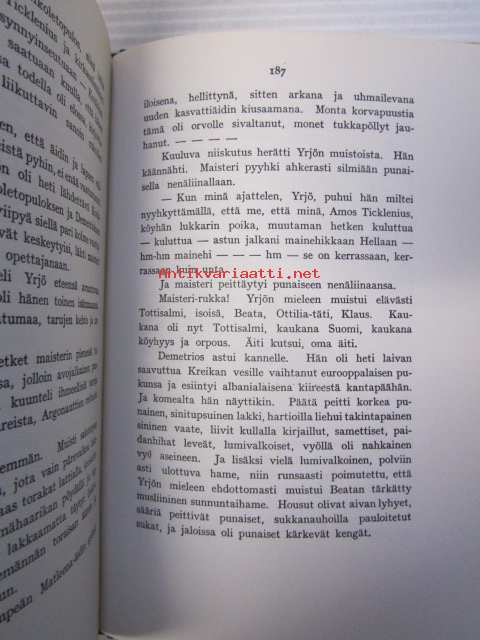 | Saatavilla | 1 kpl | | Julkaisuvuosi | 1959 | | Sivuja | 200 | | Painos | 14. | | Kunto | K2 | | Kansipaperi K2 | | Sidonta/painoasu | Sidottu (kansipaperit) | | Kielet | Suomi |