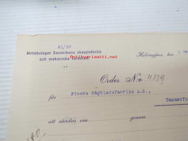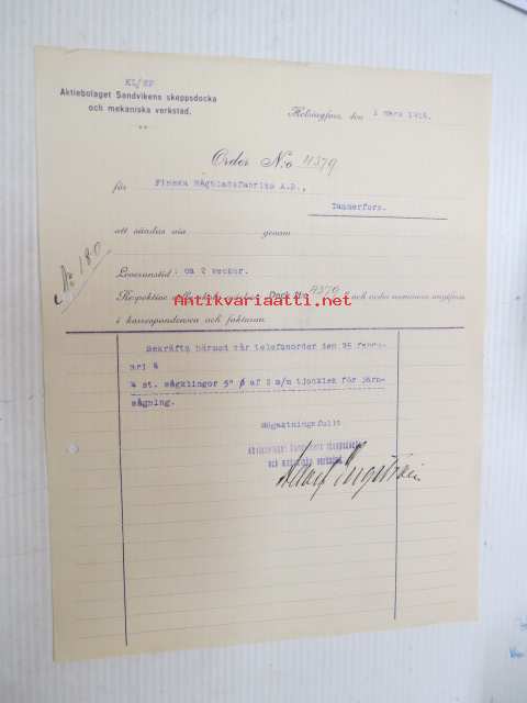 Aktiebolaget Sandvikens skeppsdocka och mekaniska verkstad, Helsingfors 1.3.1916 -asiakirja