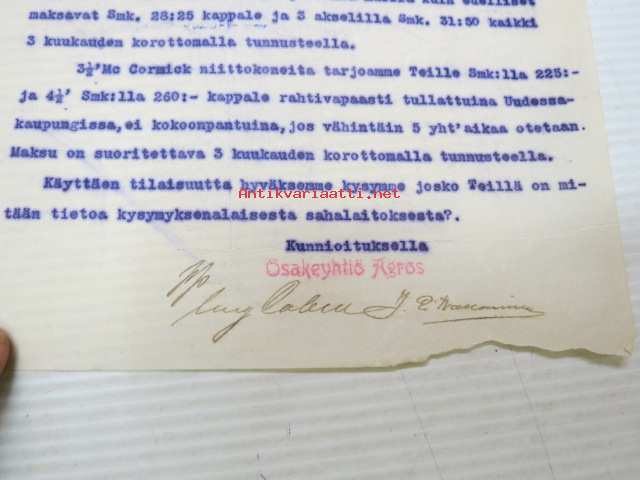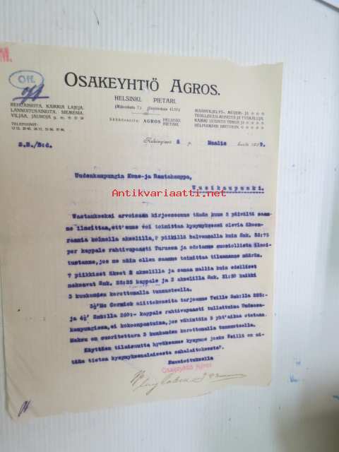 Osakeyhtiö Agros, Helsinki & Pietari 6.3.1909 -asiakirja