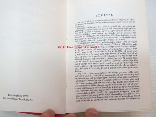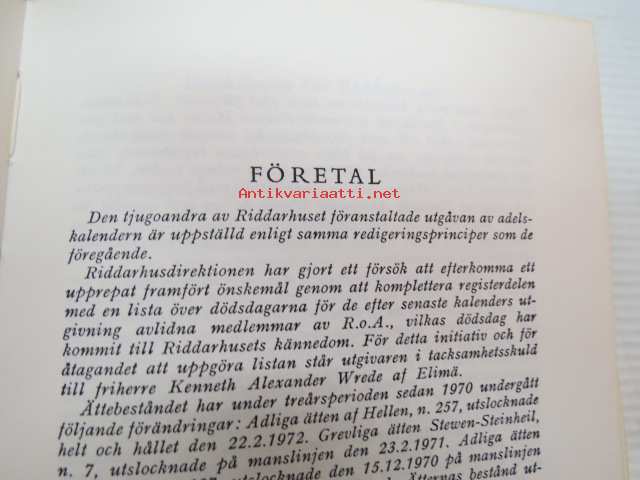 Finlands ridderskaps och adels kalender 1974 - Finlands adelskalender -aateliskalenteri