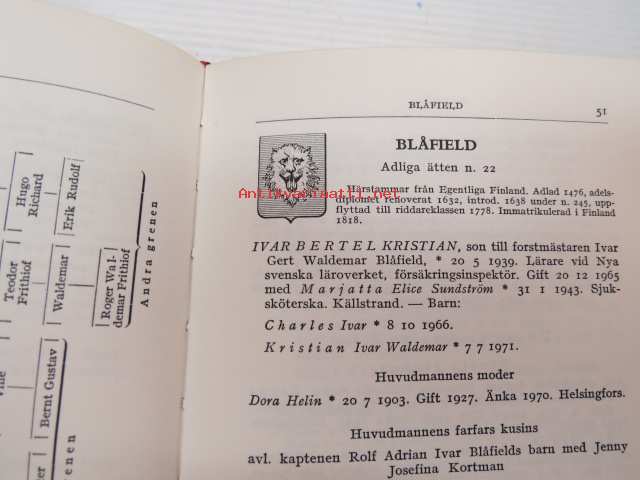 | Saatavilla | 1 kpl | | Julkaisuvuosi | 1973 | | Sivuja | 667 | | Painos | 1. | | Kunto | K2 | | Sidonta/painoasu | Sidottu (kovak.) | | Kielet | Ruotsi |