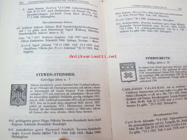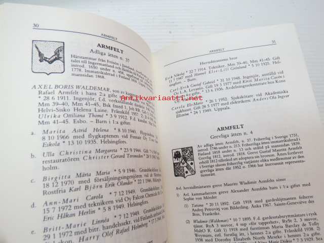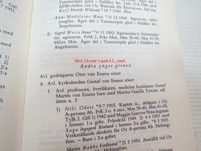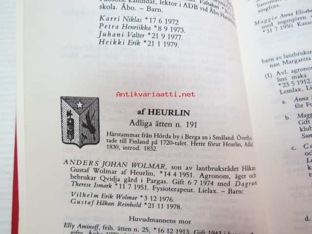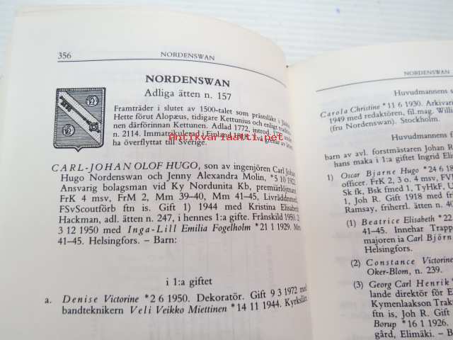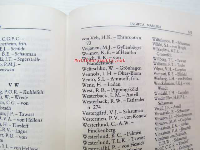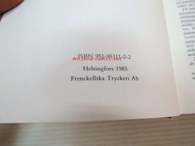 | Saatavilla | 1 kpl | | Julkaisuvuosi | 1983 | | Sivuja | 715 | | Painos | 1. | | Kunto | K2 | | Sidonta/painoasu | Sidottu (kovak.) | | ISBN | 951-95311-2-2 | | Kielet | Ruotsi |