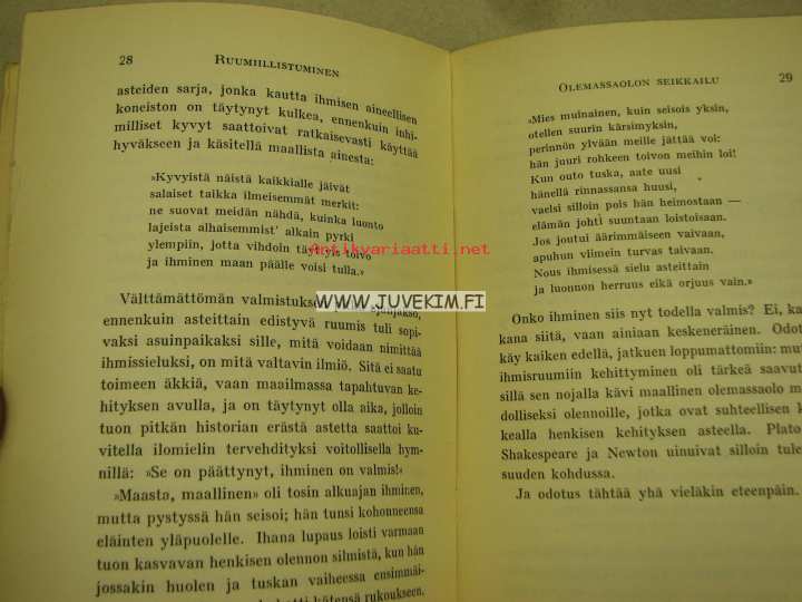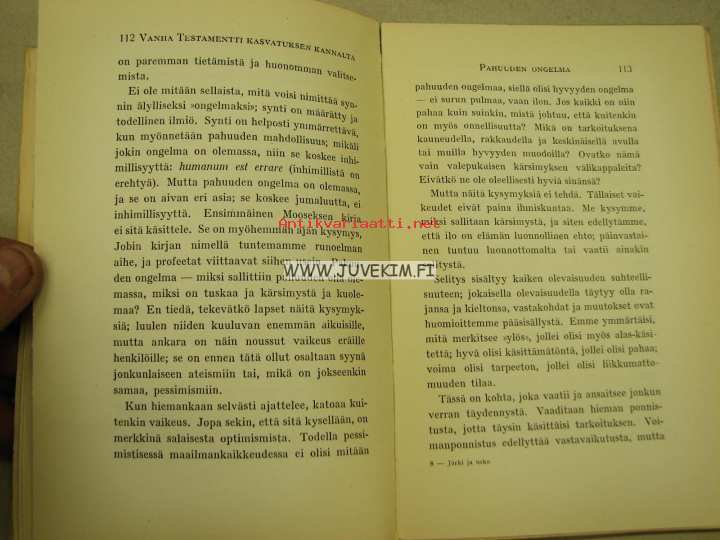 | Saatavilla | 1 kpl | | Julkaisuvuosi | 1929 | | Sivuja | 163 | | Painos | 1. | | Kunto | K2 | | Kannet irti | | Sidonta/painoasu | Nidottu (pehmeäk.) | | Kielet | Suomi |