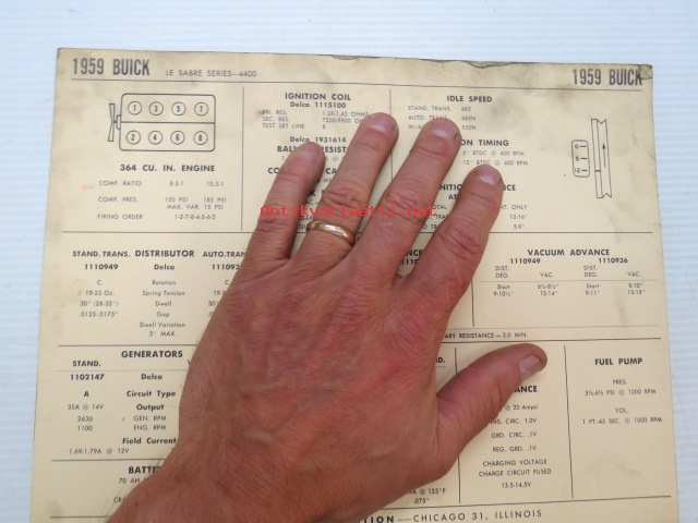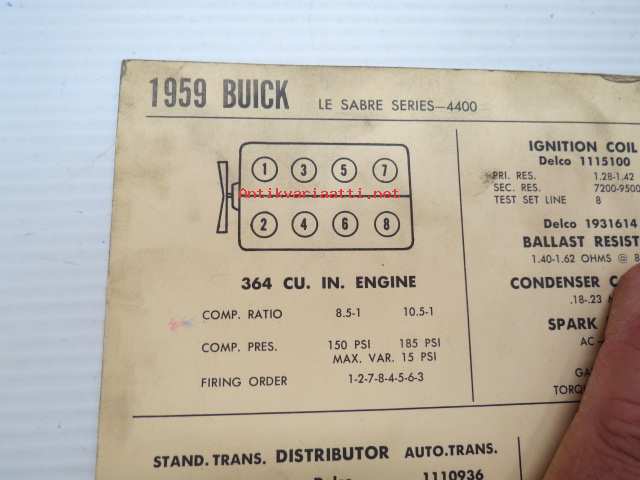 Buick Le Sabre Series-4400 1959 Data sheet / Sun Electric Corporation -säätöarvot taulukko
