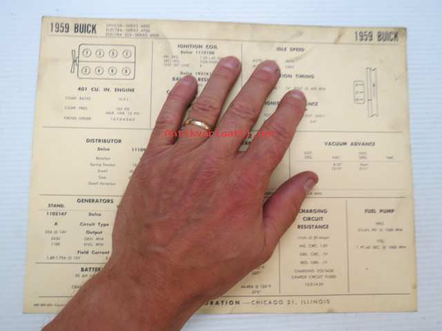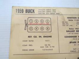 Buick Invicta - Series 4600, Electra Series 4700, Electra 225 Series 4800 1959 Data sheet / Sun Electric Corporation -säätöarvot taulukko
