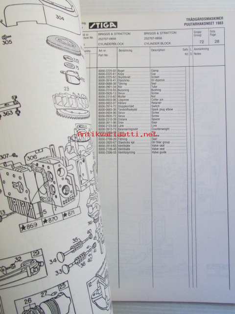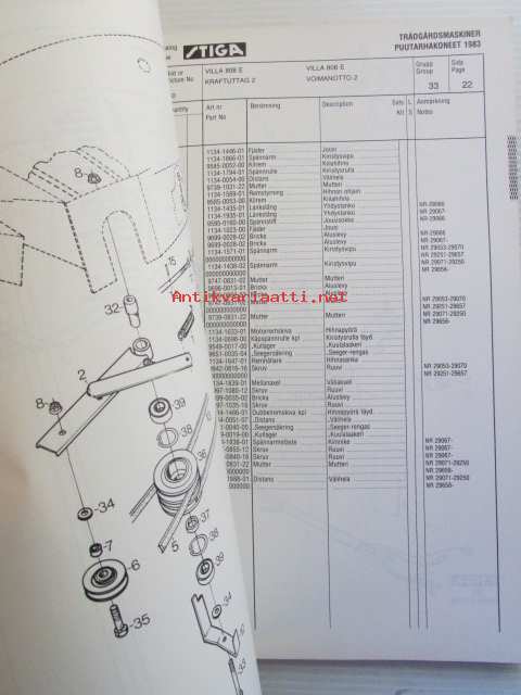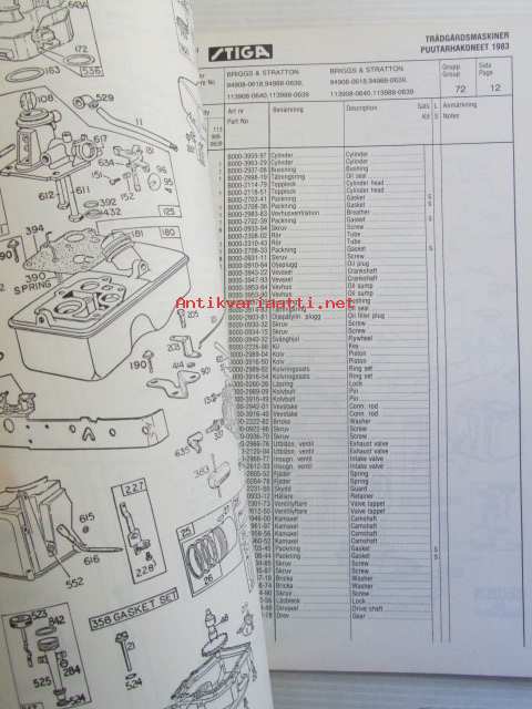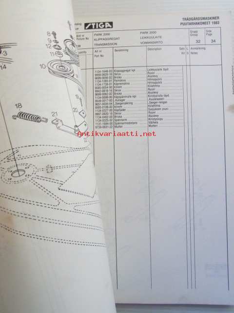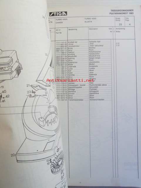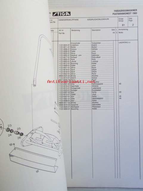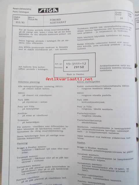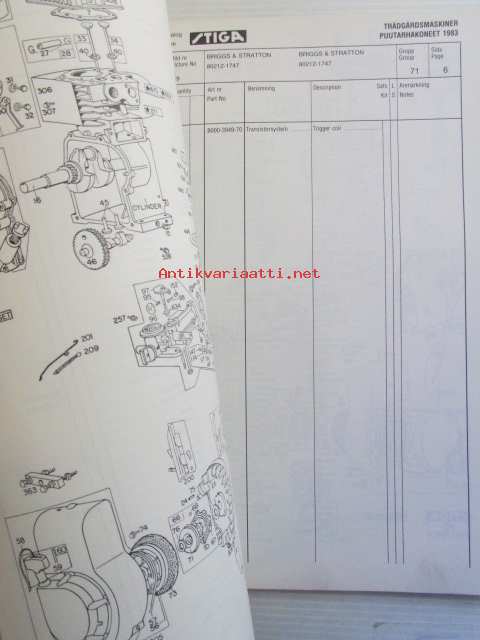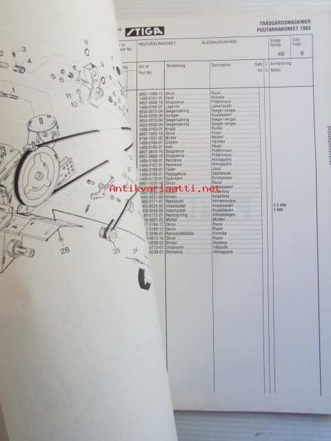 Stiga puutahakoneet 1983 / Original reservdelar -varaosakirja