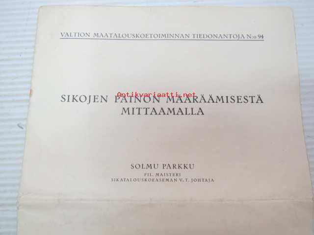 Solmu Parkku, Valtion maatalouskoetoiminnan tiedonantoja, 193517 x 24 cm.