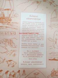 | Saatavilla | 1 kpl | | Julkaisuvuosi | 1955 | | Sivuja | 24 | | Kunto | K2 | | Sidonta/painoasu | Nidottu (pehmeäk.) | | Kielet | Suomi |