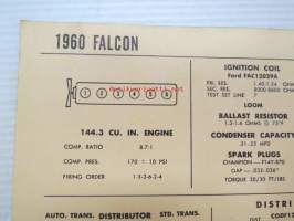 Ford Falcon 1960 Data sheet / Sun Electric Corporation -säätöarvot taulukko