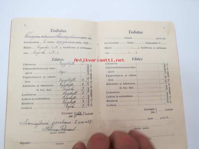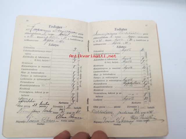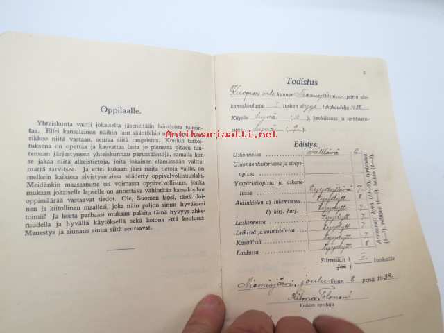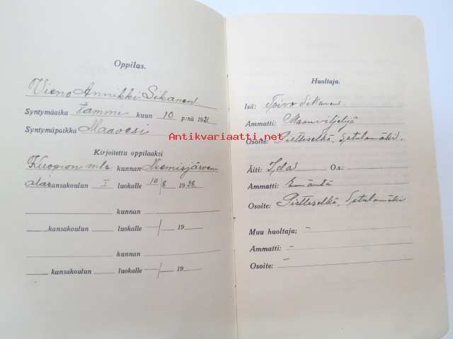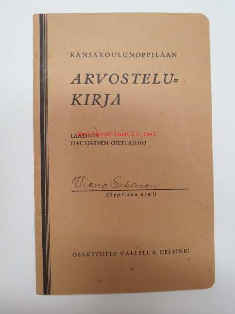 Kansakoulunoppilaan arvostelukirja - Laatinut Hausjärven opettajisto - Vieno Sikanen - Kuopion maalaiskunta Niemisjärvi alakansakoulu