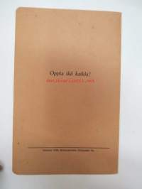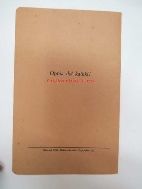 | Saatavilla | 1 kpl | | Julkaisuvuosi | 1938 | | Kunto | K3 | | Sidonta/painoasu | Nidottu (pehmeäk.) | | Kielet | Suomi |