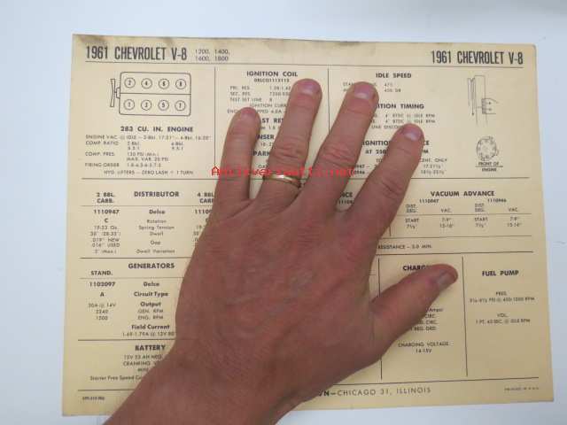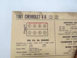 Chevrolet V8 283 1200, 1400, 1600, 1800 1961 Data sheet / Sun Electric Corporation -säätöarvot taulukko