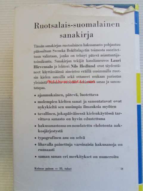 Lauri Hirvensalo, Nils Hedlund, WSOY, 196715 x 20 cm.
