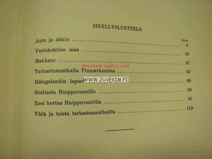 | Saatavilla | 1 kpl | | Julkaisuvuosi | 1938 | | Sivuja | 139 | | Painos | 1. | | Kunto | K3 | | Sidonta/painoasu | Sidottu (kovak.) | | Kielet | Suomi |