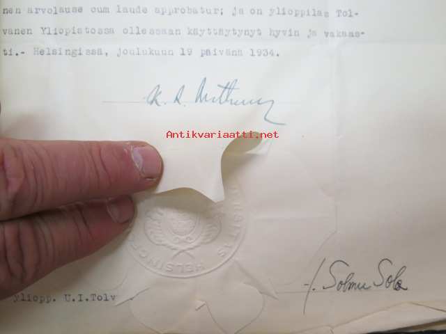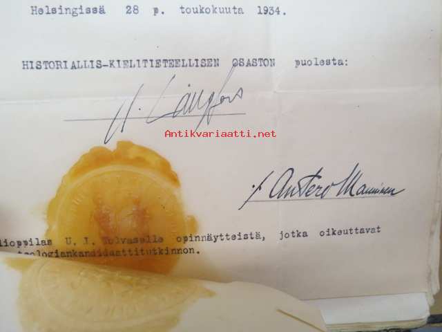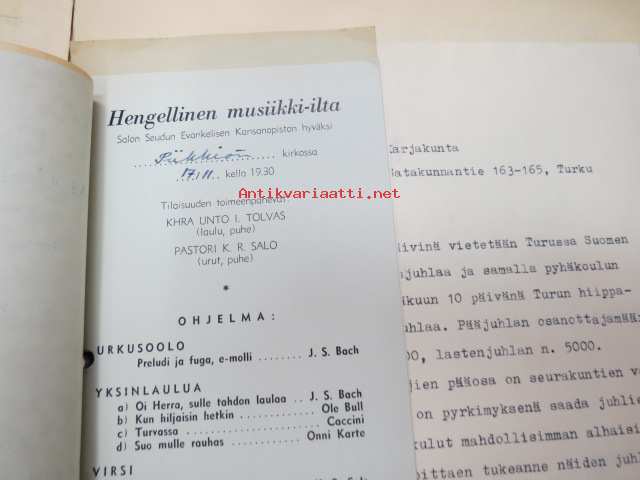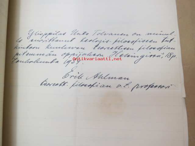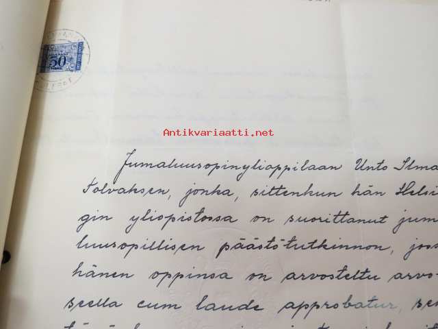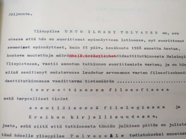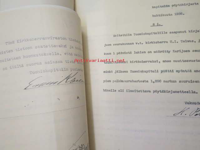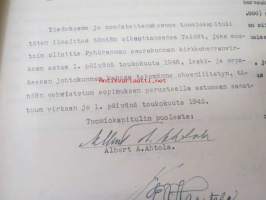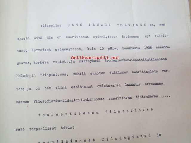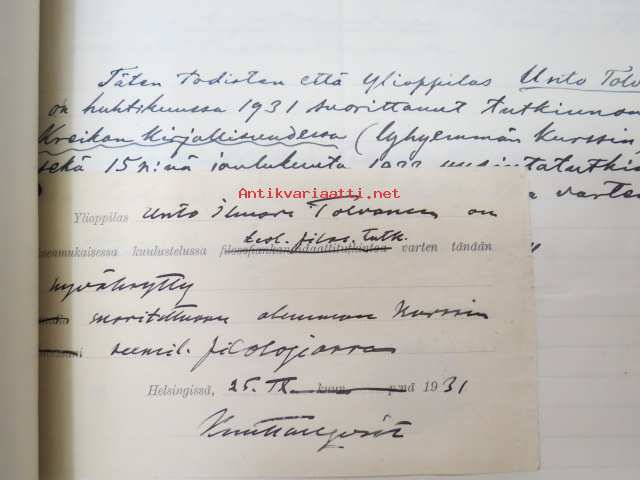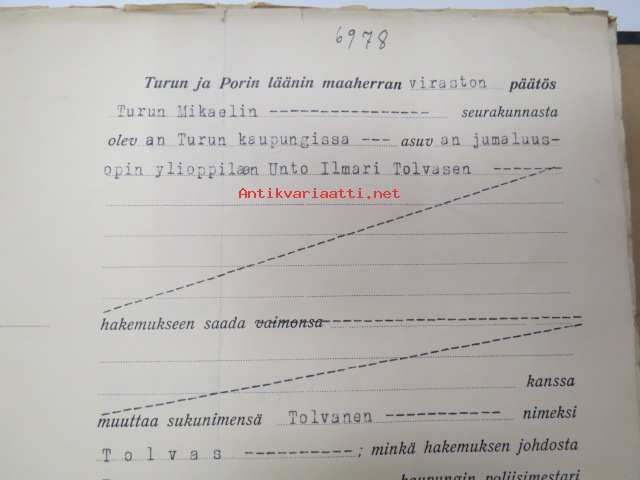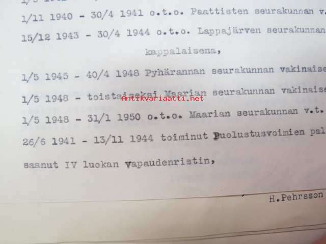 Unto Ilmari Tolvanen - (nimenmuutoksen jälkeen) Tolvas - kansiollinen pappisuraan liittyviä todistuksia, nimityskirjoja, asiakirjoja jne.