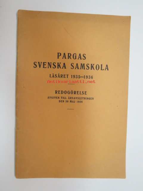 Pargas Svenska Samskola, 193615 x 22 cm.