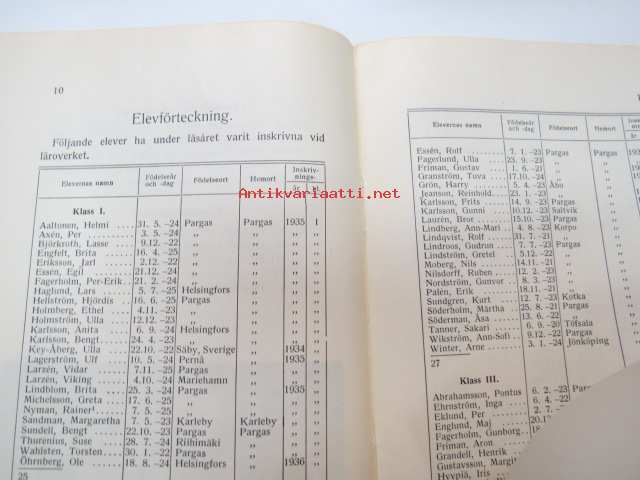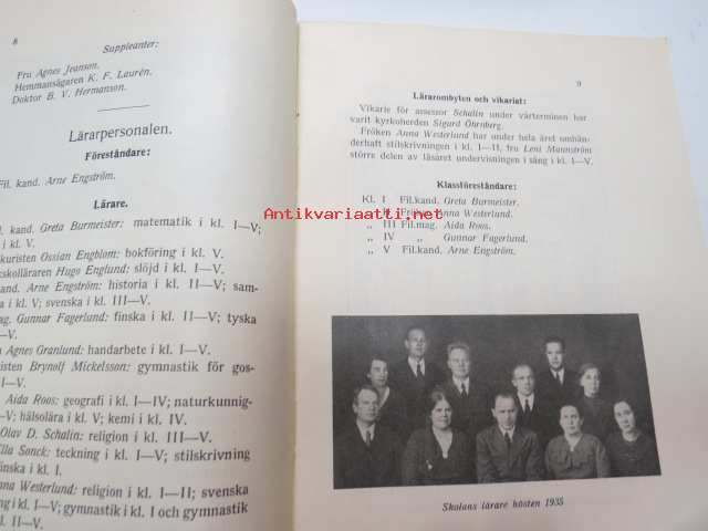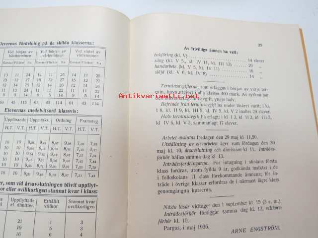 Pargas svenska samskola - Läsåret 1935-1936 Redogörelse + elevförteckning