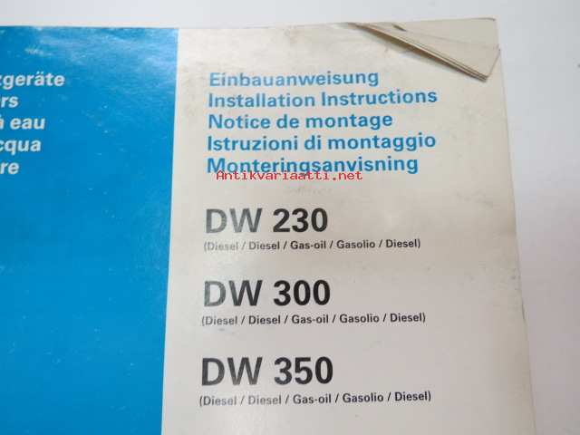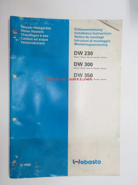 Webasto Thermosysteme GmbH, 1990Webasto DW 230, DW 300, DW 350 Wasser-Heizgeräte - Water Heaters - Chauffages a eau - Caldaie ad acqua - Vattenvärmare / Einbauanweisung - Installation Instruction - Notice de montage - Istruzioni di montaggio - Monteringsanvisning -monikielinen asennusohjekirja, ei suomeksi