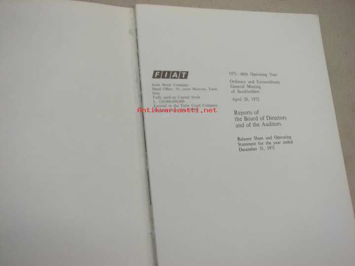 Fiat 1971 Reports of the Board of Directors and of the Auditors to Stockholders -osakeyhtiön vuo´sikertomus