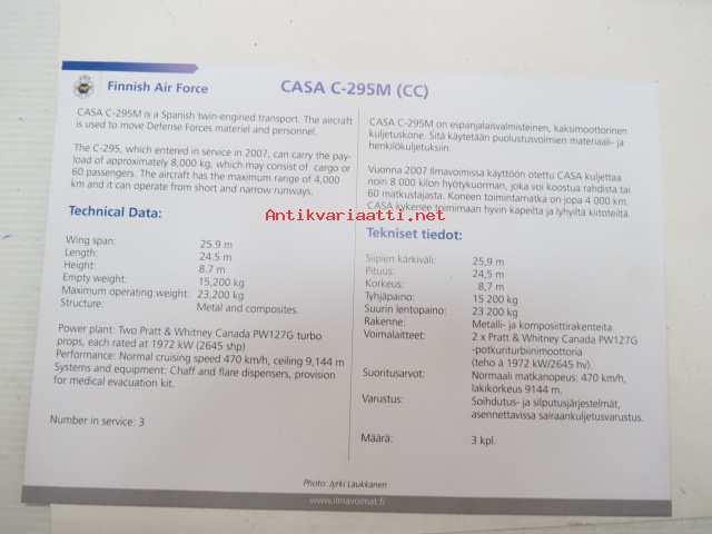 Finnish Air Force CASA C-295M (CC) -esittelypainate / painokuva