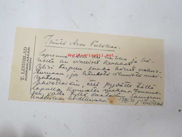 "Isäntä Arvo Tulokas - Lapsenne Alli on heikko ja hänellä on vialliset keuhkot. Olisi tarpeen saada hänet vahvistumaan, jos hänestä ihmistä meinataan" - kunnanlääkäri T. Lindblad - Somero, lausunto ja ehdotus lapsen hoitamiseksi, 1933