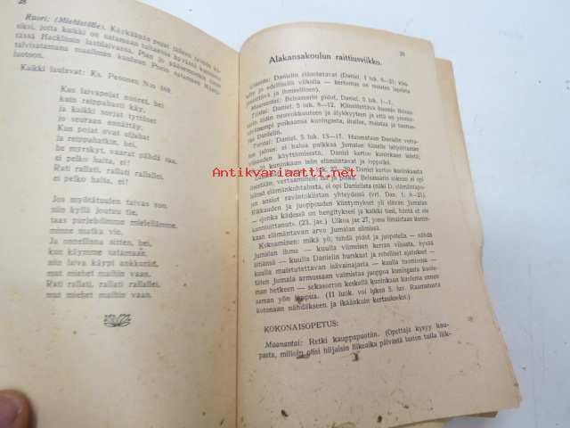 | Saatavilla | 1 kpl | | Sivuja | 39 | | Kunto | K2 | | Sidonta/painoasu | Paperikannet | | Kielet | Suomi |