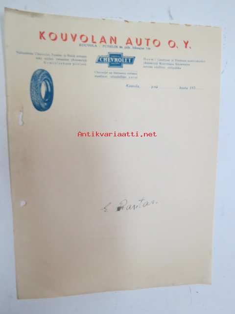 Kouvolan Auto Oy, Kouvola -asiakirja, firmalomake