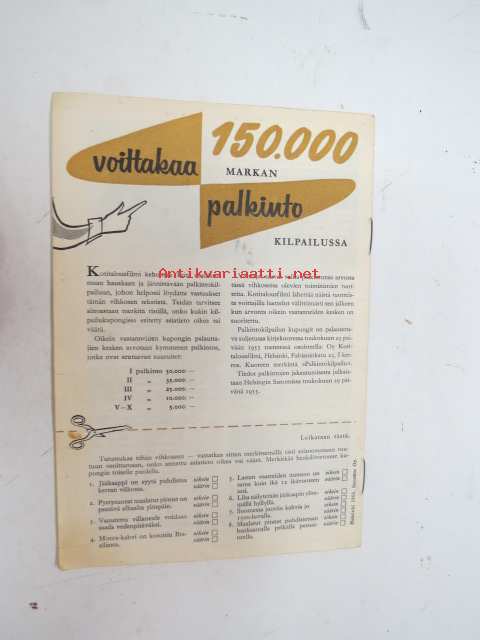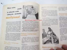 | Saatavilla | 1 kpl | | Julkaisuvuosi | 1955 | | Sivuja | 12 | | Kunto | K3 | | Sidonta/painoasu | Pienpainate | | Kielet | Suomi |