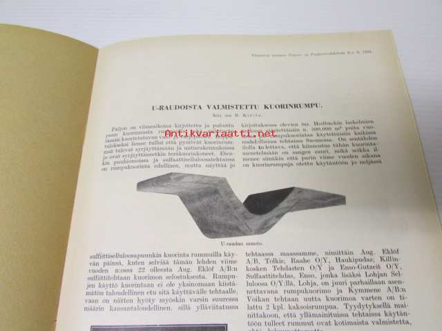 U-raudoista valmistettu kuorintarumpu, ylipainos Suomen Paperi- ja Puutavaralehdestä 1930 nr 9