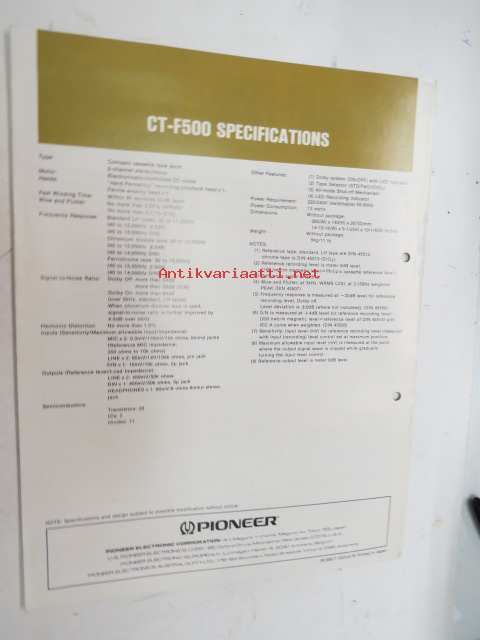 Pioneer CT-F500 Cassette Deck -myyntiesite