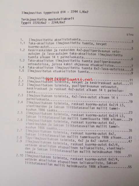 Mercedes-Benz kuorma-auton ilmajousitus tyypeissä 814 - 2244 L/6x2 - Teräsjousitettu nostoteliakseli Tyypit 2220/6x2 - 2244/6x2