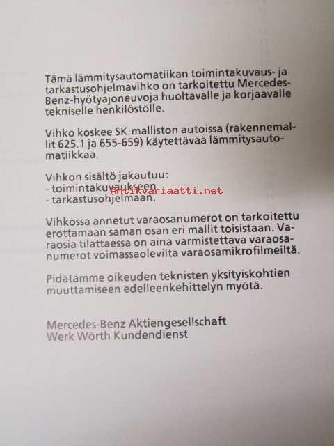 Mercedes-Benz Lämmitysautomatiikka Kuorma-autot - Toimintakuvaus ja tarkastusohjelma