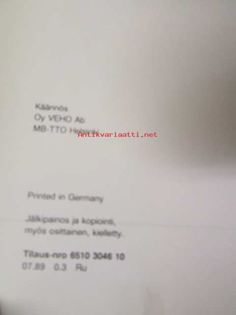 | Saatavilla | 1 kpl | | Julkaisuvuosi | 1989 | | Sivuja | 31 | | Kunto | K2 | | Sidonta/painoasu | Nidottu (pehmeäk.) | | Kielet | Suomi |