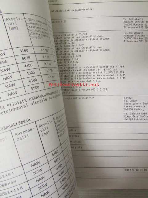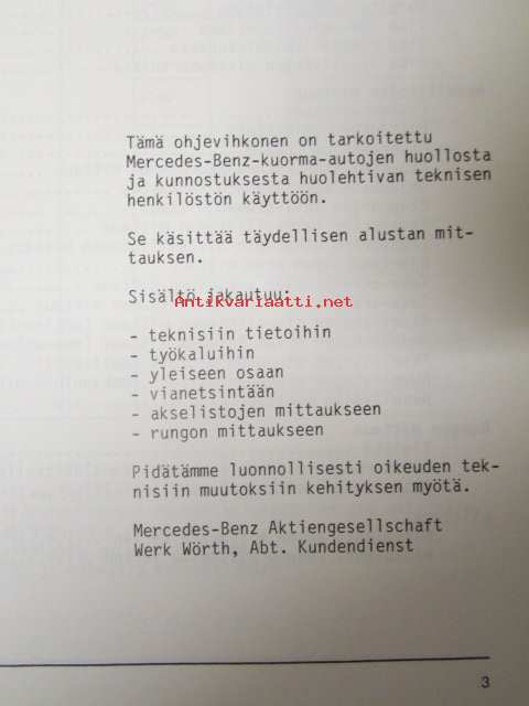 Mercedes-Benz Auton alustan mittaus Kuorma-autot - Ohjevihkonen huoltoa varten