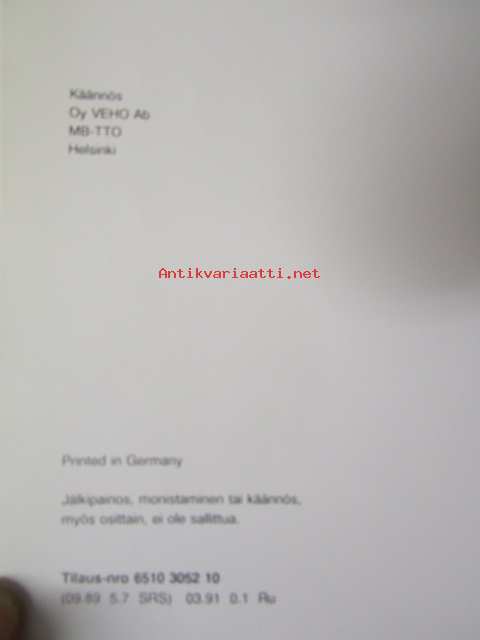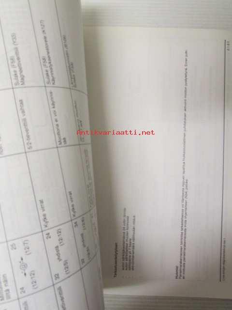 | Saatavilla | 1 kpl | | Julkaisuvuosi | 1989 | | Kunto | K2 | | Sidonta/painoasu | Nidottu (pehmeäk.) | | Kielet | Suomi |