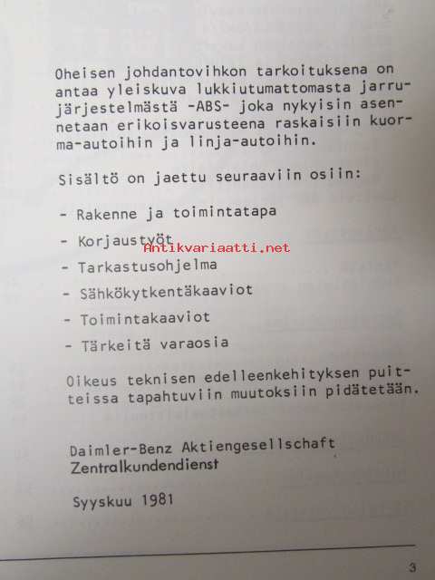 Mercedes-Benz Lukkiutumaton jarrujärjestelmä ABS Kuorma- ja linja-autot - Huoltotöiden johdantovihko, katso kuvista sisältö tarkemmin
