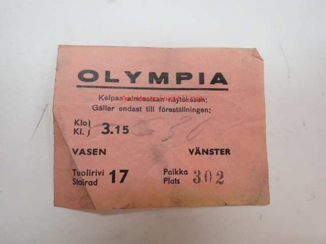 Olympia 11.4.1943 -elokuvateatterin pääsylippu