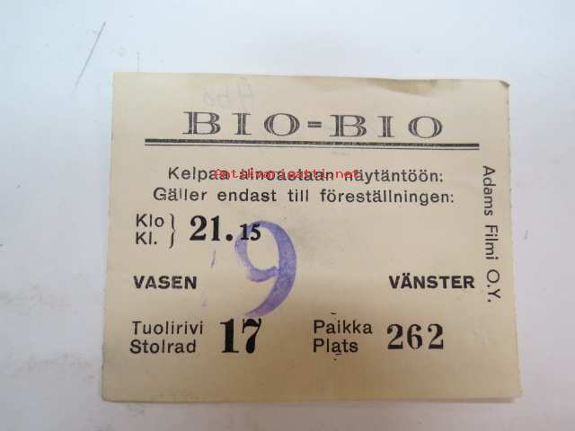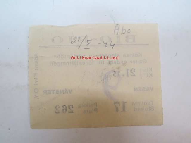 Bio-Bio (Turku) 21.5.1944 -elokuvateatterin pääsylippu