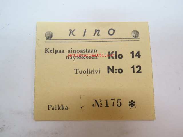 Kino (Toijala) 17.3.1944 -elokuvateatterin pääsylippu