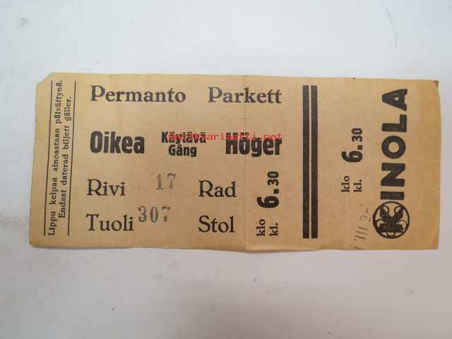 Kinola -elokuvateatterin pääsylippu