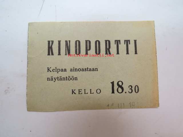 Kinoportti 11.3.1943 -elokuvateatterin pääsylippu