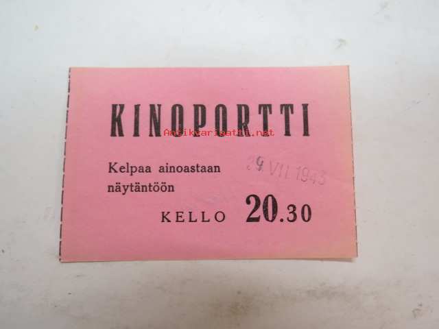 Kinoportti 24.7.1943 -elokuvateatterin pääsylippu